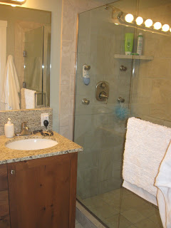 We moved in to our new house Easter weekend. It still didn't have appliances, shower glass, some tile, etc. but it was done enough to live in. The contractor has been in and out finishing things up and we still haven't gotten all the way unpacked, but we are loving our new space.